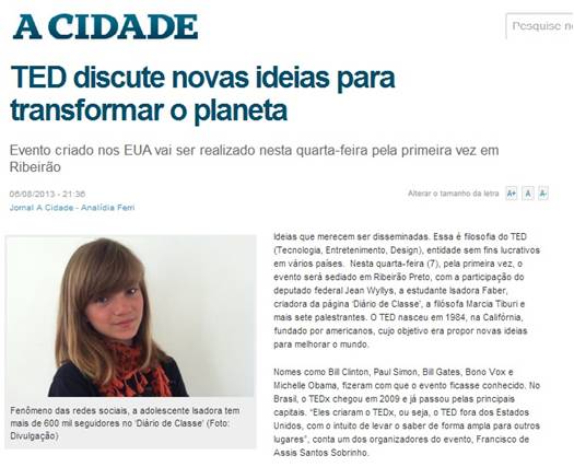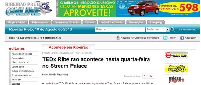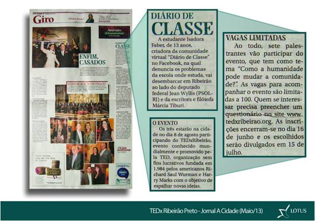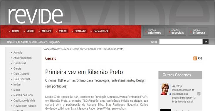 Imprensa Essas são algumas das matérias que saíram sobre o TEDxRibeirão 2013.