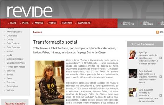 Imprensa Essas são algumas das matérias que saíram sobre o TEDxRibeirão 2013.